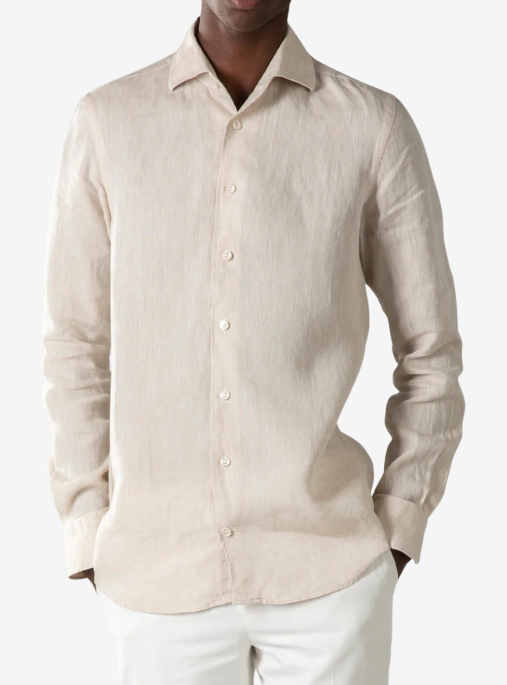 A refined choice for warmer months. Crafted from breathable linen, this shirt features a structured spread collar designed to stay in place when worn open. Equally suited to relaxed days in the city or elegant evenings on holiday.